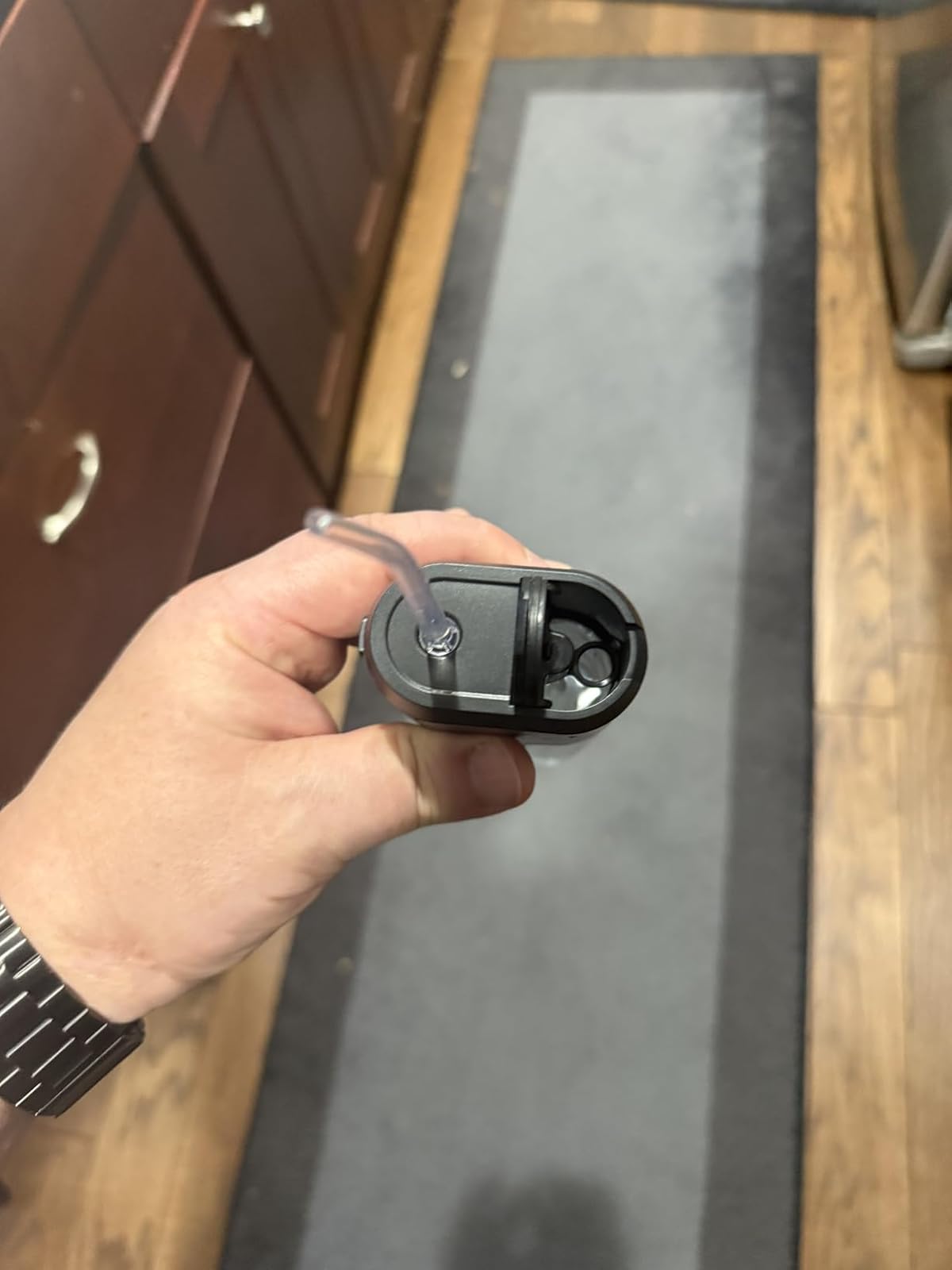 Most portable water flossers fail for the same reason. The tank is either fixed and impossible to clean or removable but leaky and frustrating to fill. The Evina™ Mini solves both problems with a wide-mouth detachable tank that is twice as wide as competitor designs, making it effortless to fill under any faucet and completely dry between uses. The leak-proof click seal means you can toss it directly into your toiletry bag without wrapping it in a plastic bag first. No drips. No mold. No standing water building up inside. Just a clean tank ready to use every single time you reach for it.